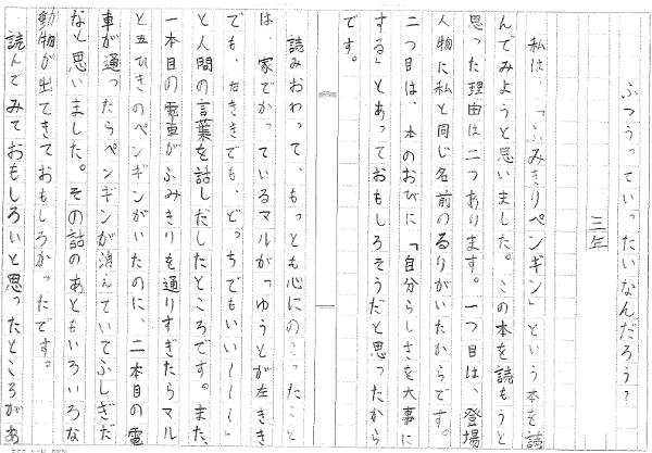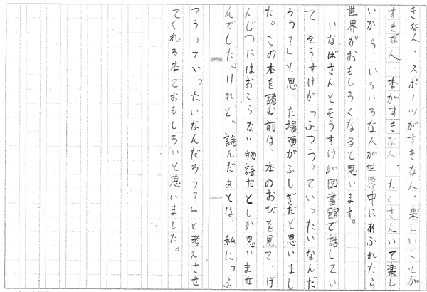 読書感想文を書いたお友だちの 作品の一部ご紹介します。